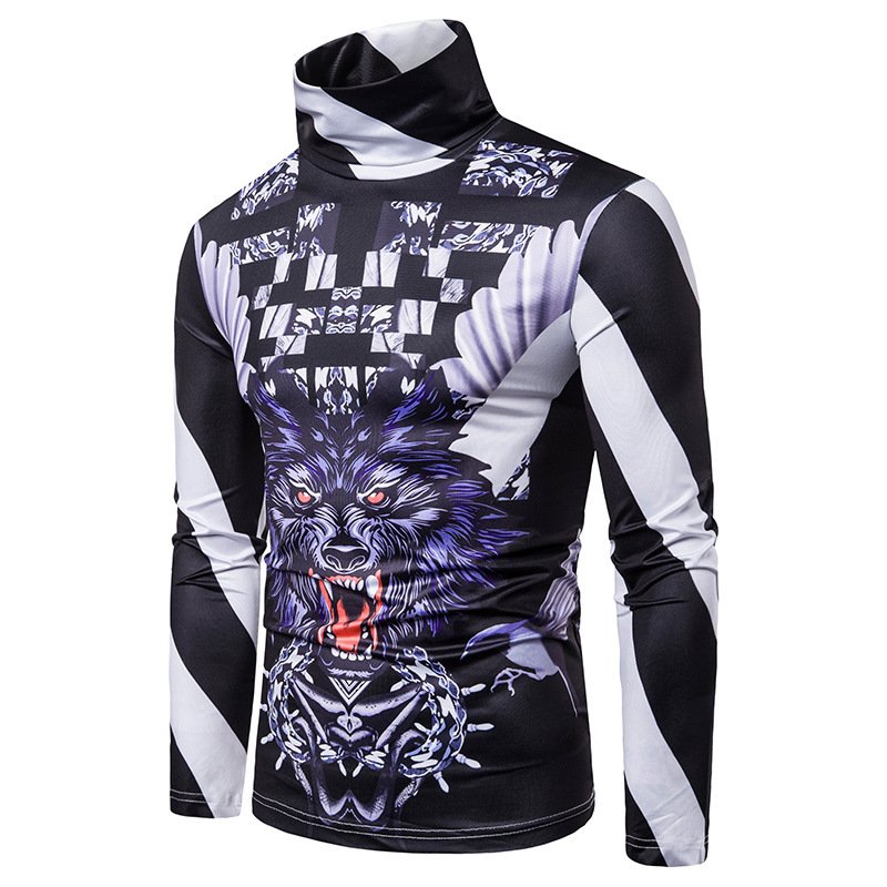 New men's large size 3D cheetah stripe print high neck long sleeve T-shirt bottoming shirt L14