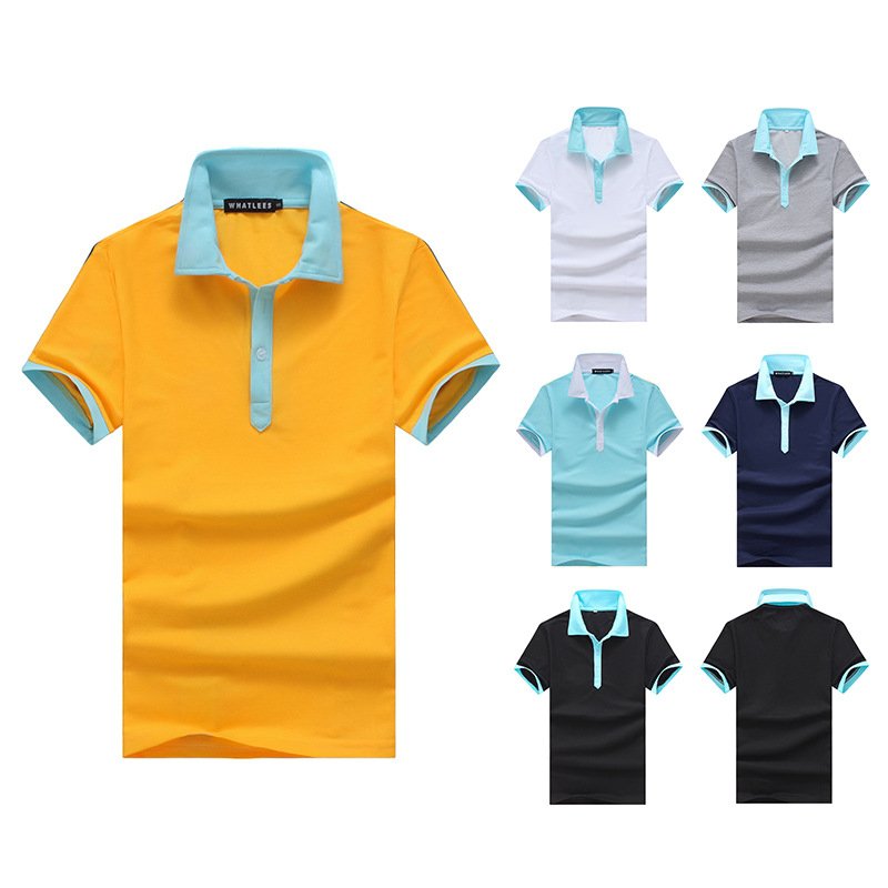 2021 summer new product WHATLEES foreign trade men's personality contrast color lapel short-sleeved T-shirt B45